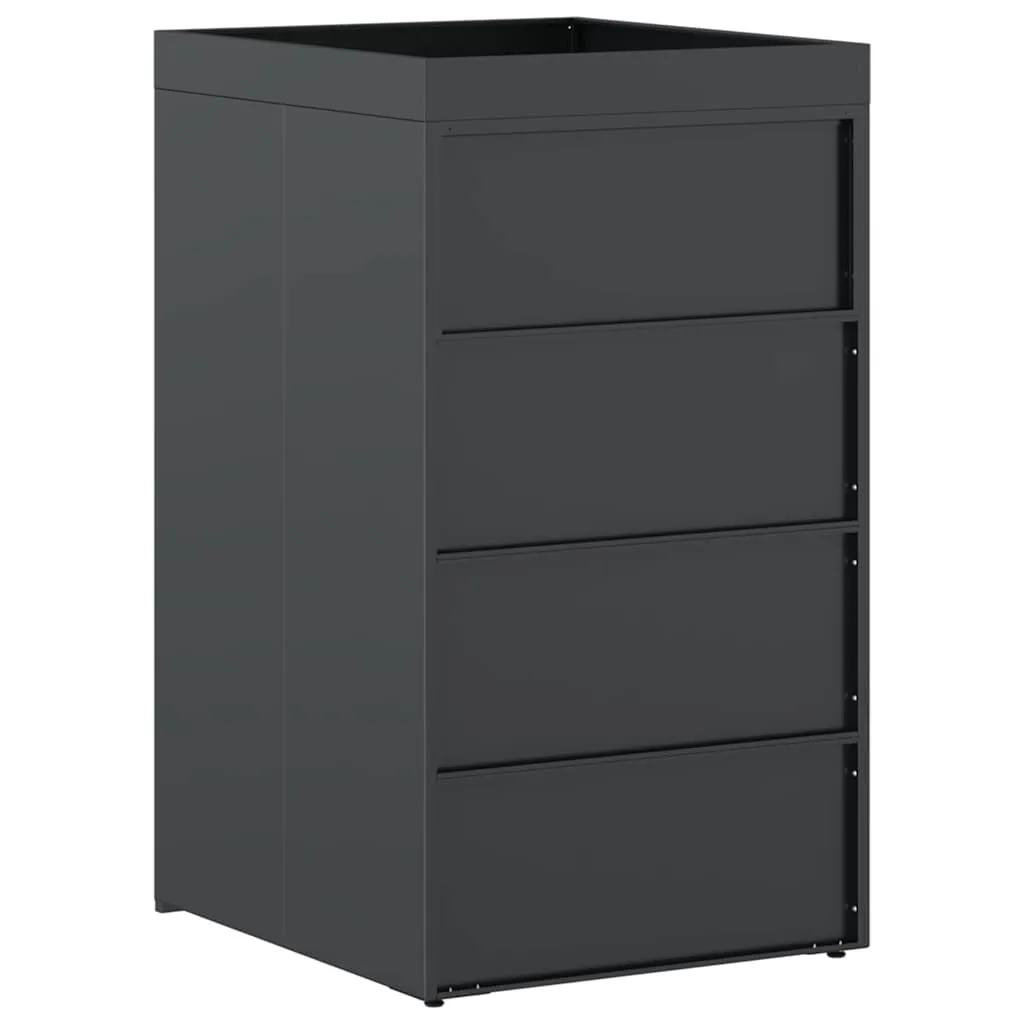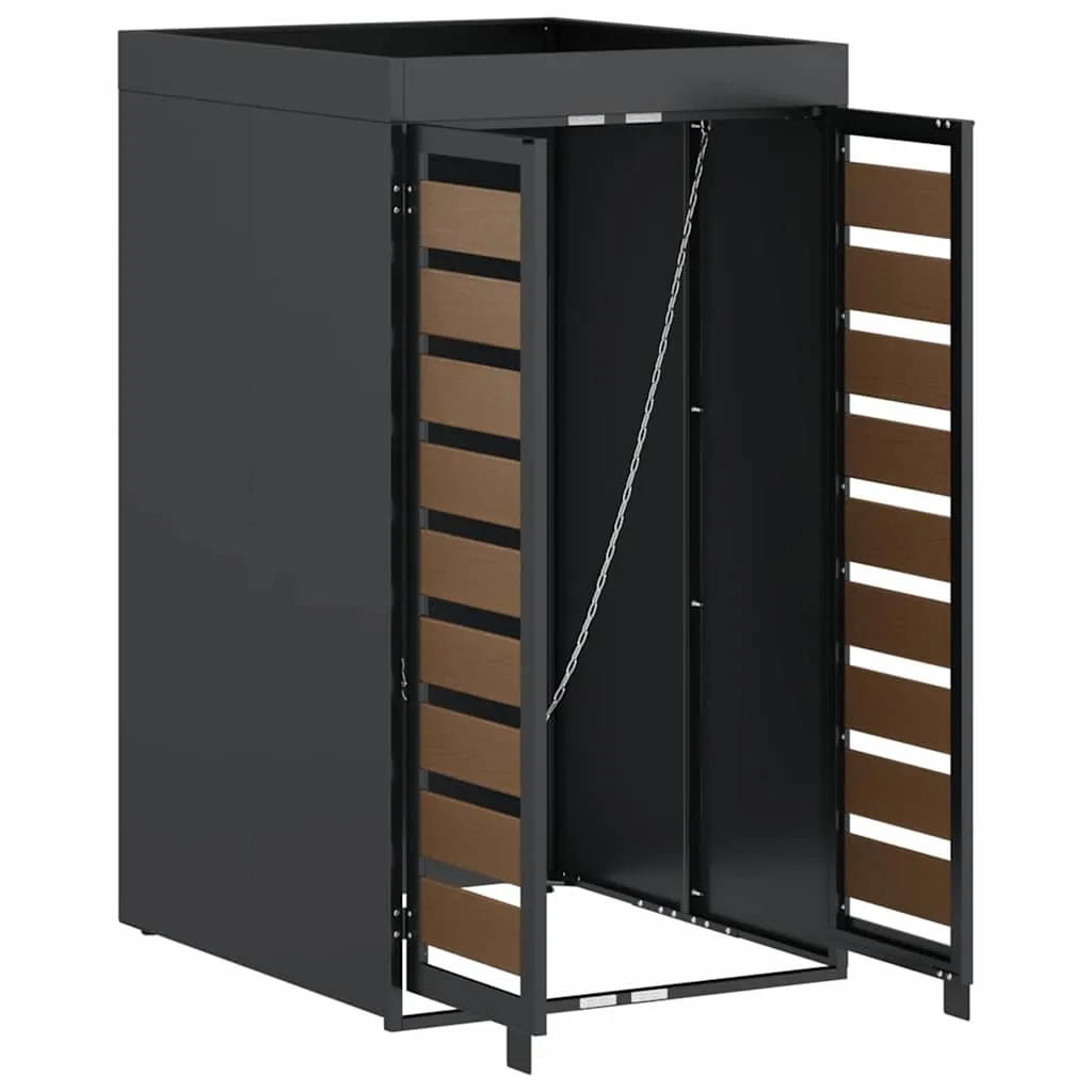 Transformă-ți spațiul exterior într-un mediu ordonat și estetic cu acest depozit special conceput pentru coșuri de 240L. Construit din oțel de înaltă calitate în culoarea elegantă antracit, acest depozit aduce un plus de organizare și stil în grădina sau pe terasa ta.
