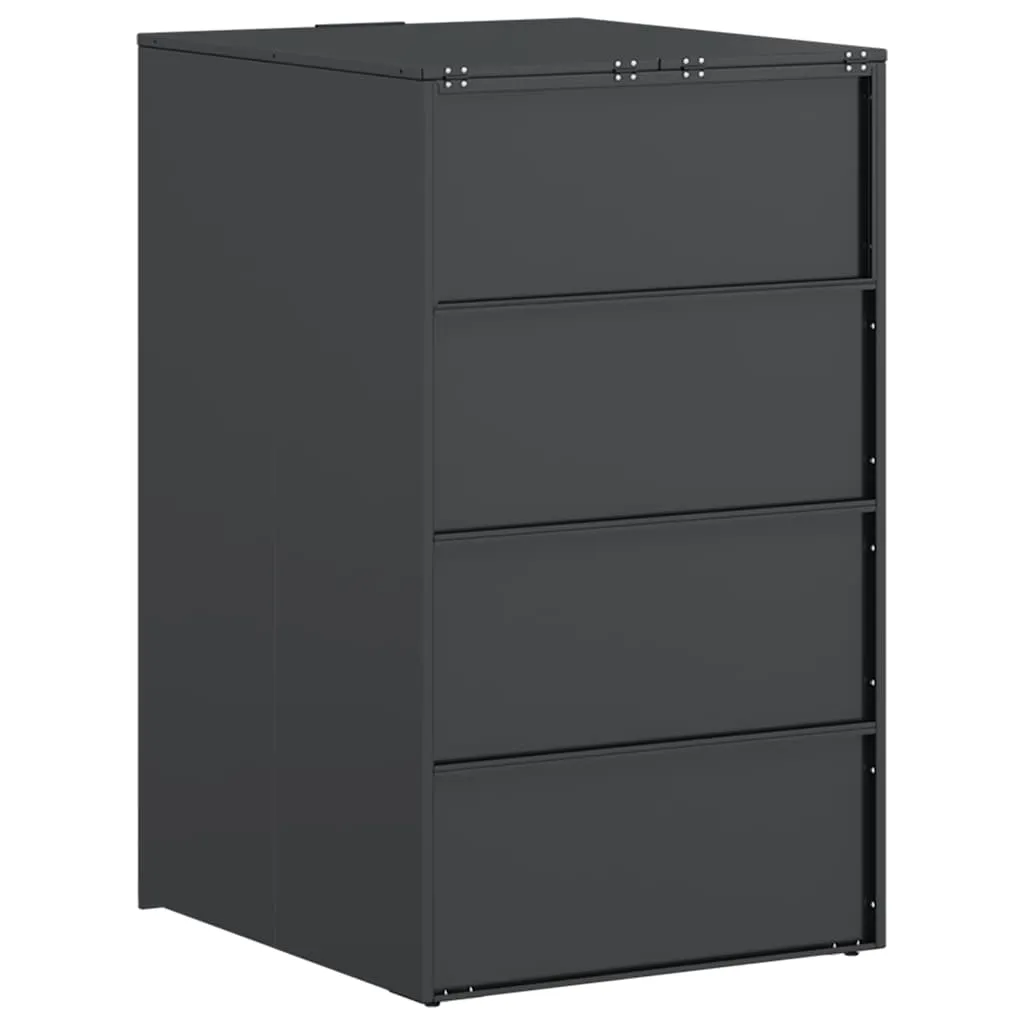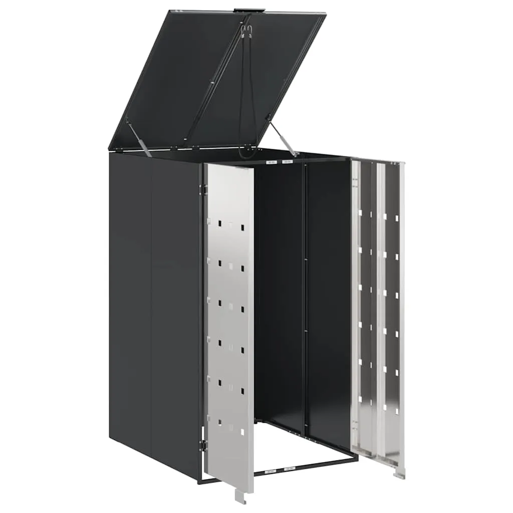 Transformă-ți spațiul exterior cu acest depozit elegant pentru coșuri de gunoi. Proiectat din oțel durabil în culoarea antracit, acest depozit îți oferă soluția perfectă pentru menținerea curățeniei și organizării în grădină sau pe terasă.