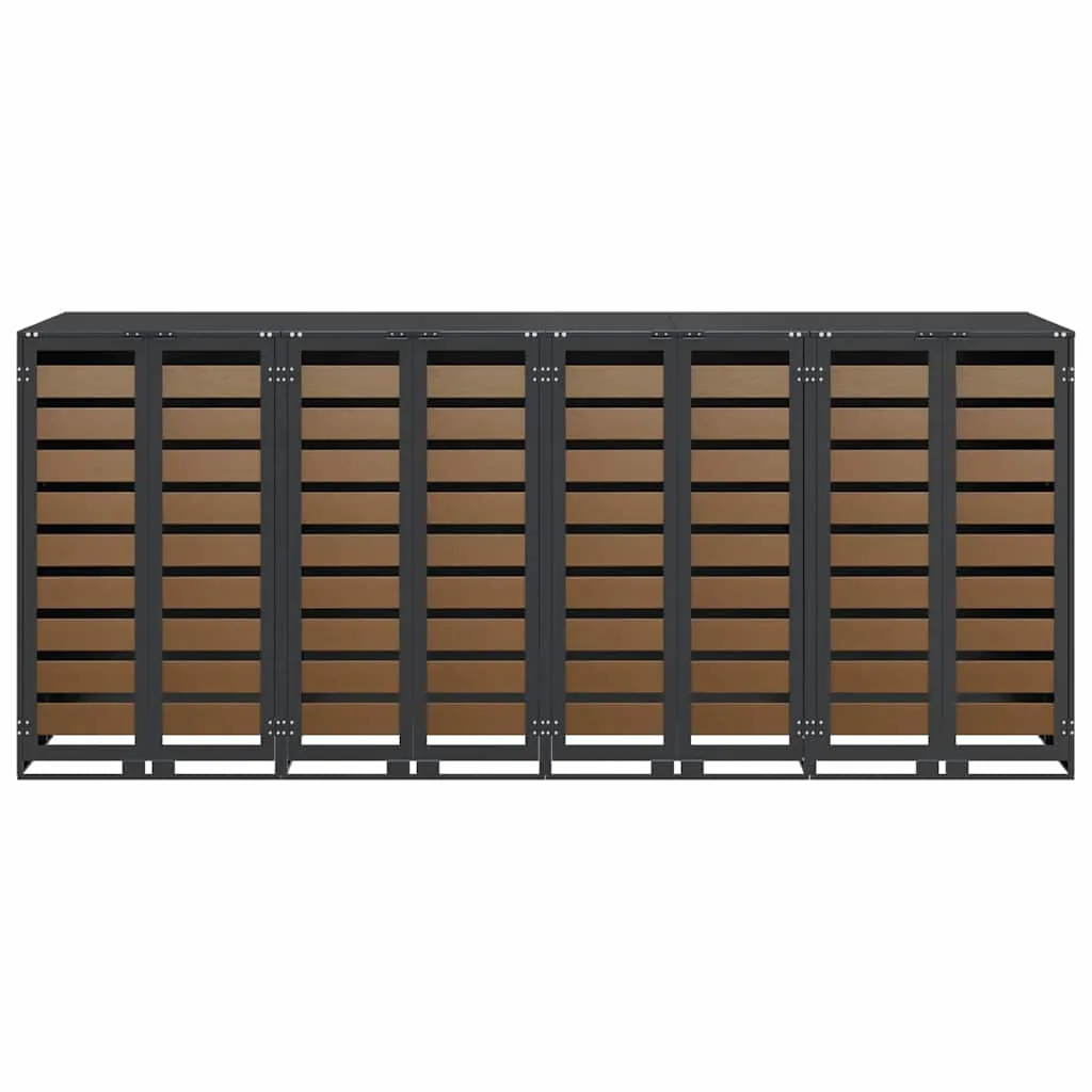 Soluția perfectă pentru organizarea eficientă a gunoiului în spațiile exterioare. Acest depozit elegant în culoarea antracit se integrează armonios în grădină sau pe terasă, oferind un aspect ordonat și plăcut.
