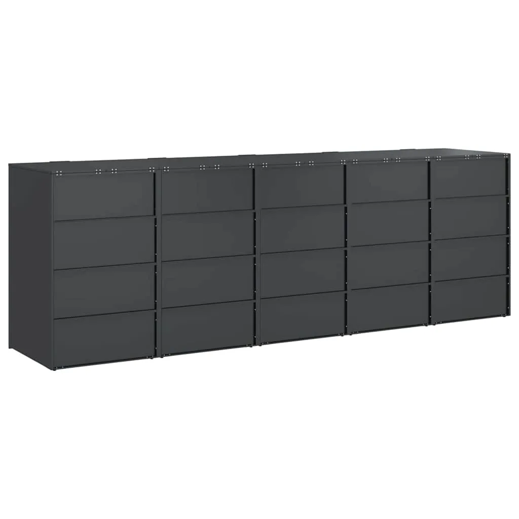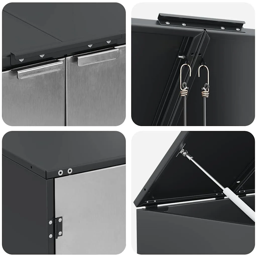 Acest depozit nu doar că-ți organizează spațiul exterior, dar îți și îmbunătățește estetica generală a locuinței. Designul modern în nuanța antracit se integrează perfect în orice ambient exterior, oferind o soluție discretă și eficientă pentru depozitarea containerelor de gunoi.