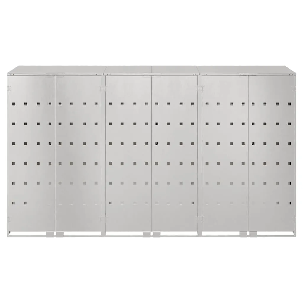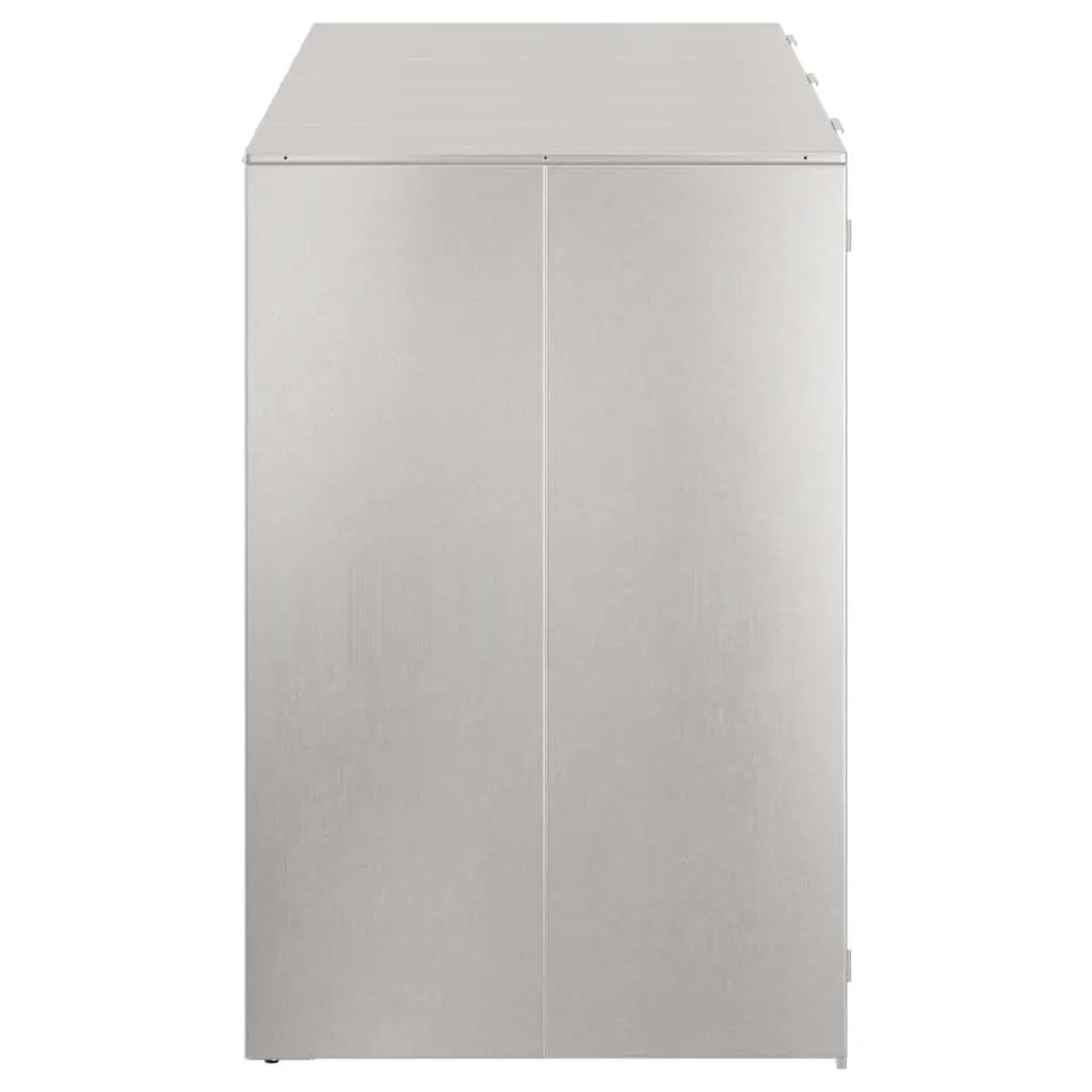Transformă-ți spațiul exterior cu acest depozit elegant pentru 3 pubele wheelie. Fabricat din oțel inoxidabil de calitate, acest depozit oferă soluția ideală pentru menținerea curățeniei și organizării în grădină, curte sau terasă. Culoarea argintiu modernă se integrează perfect în orice ambient exterior.