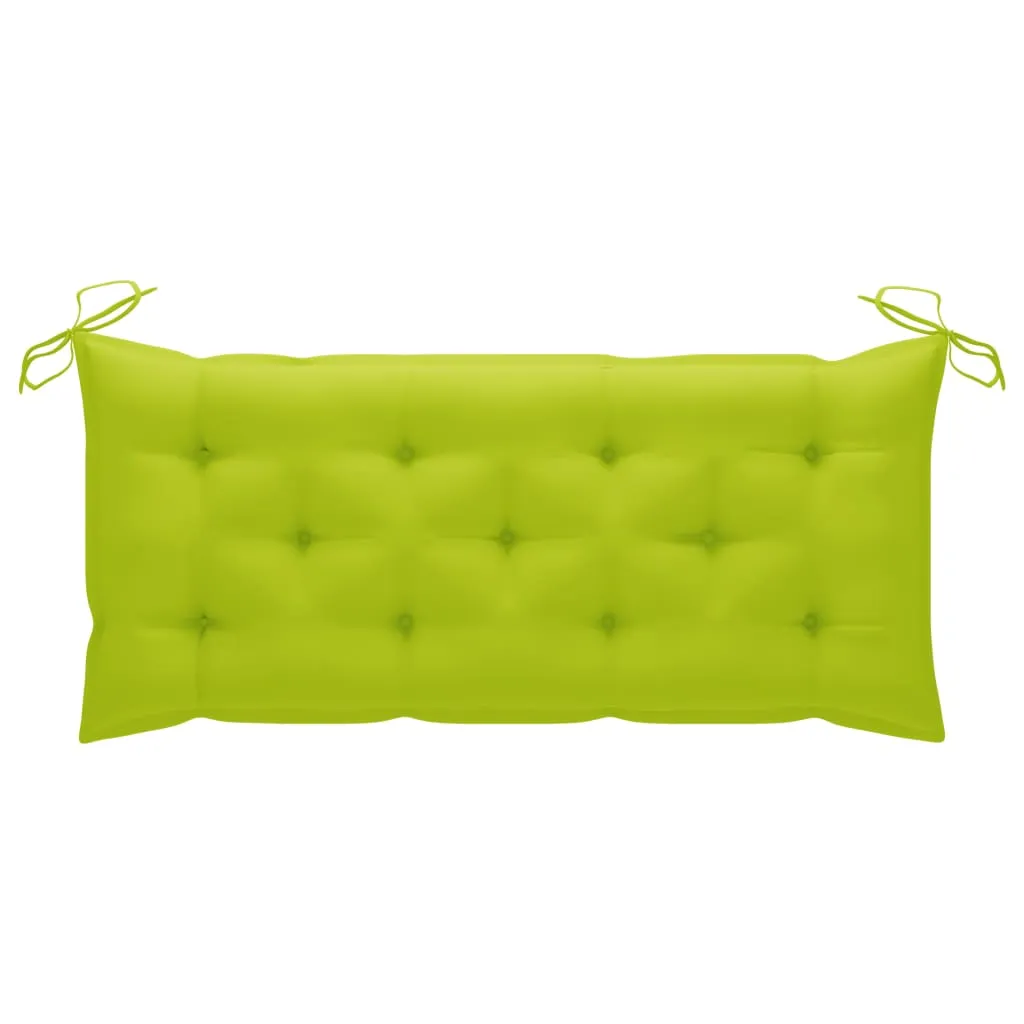 Banca este confecționată din lemn de tec de înaltă calitate, uscat la cuptor și șlefuit pentru o suprafață netedă. Finisajul pe bază de apă protejează lemnul și păstrează aspectul natural. Pernata verde din poliester 100% este rezistentă la uzură și ușor de întreținut, oferind comfort suplimentar.