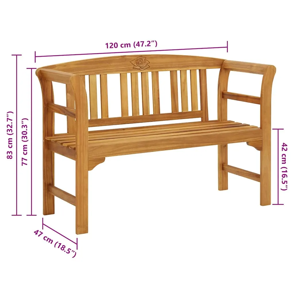 Transformă-ți grădina într-un oasis de liniște cu această bancă din lemn masiv de acacia. Finisajul cu ulei protejează lemnul de factorii meteorologici, asigurând durabilitate și rezistență pe termen lung. Designul rafinat, cu spătar gravat cu un trandafir și cotiere elegante curbate, adaugă o notă de sofisticare oricărui spațiu exterior.