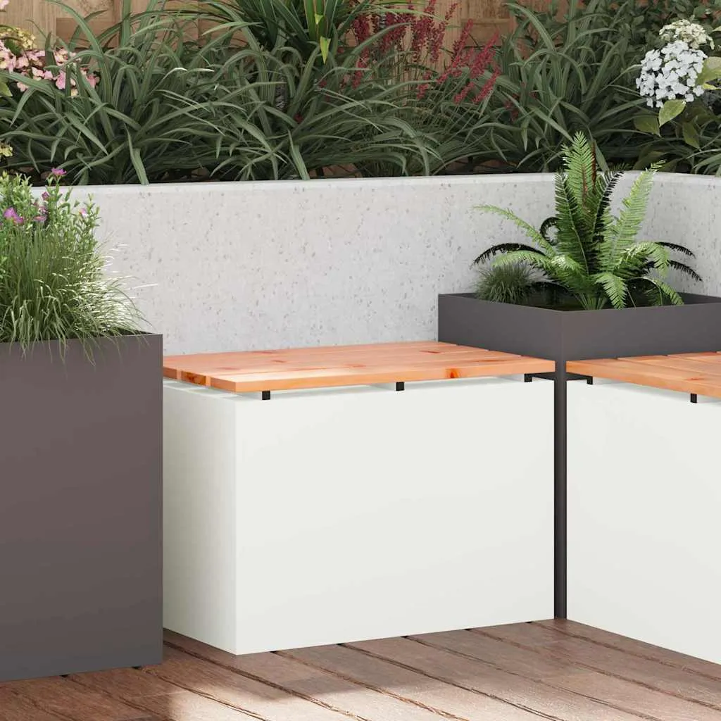 Construcție premium: Cadrul din oțel asigură stabilitate și rezistență, în timp ce blatul din lemn masiv de duglas aduce caldul și frumusețea naturii direct în grădina ta. Grăunțele fine ale lemnului creează un aspect rafinat și natural.