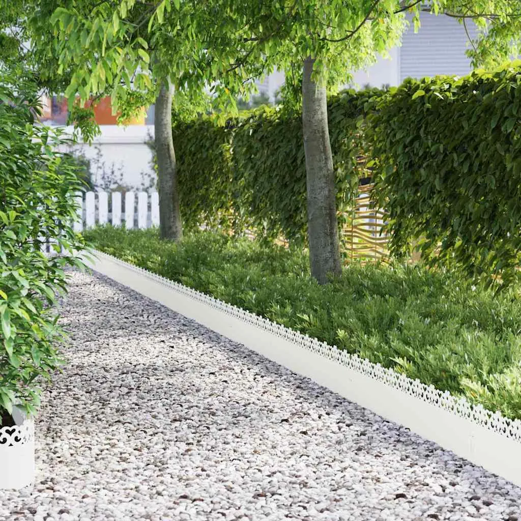 Acest set de 10 borduri din oțel vă oferă soluția perfectă pentru a delimita și organiza spațiile verzi. Culoarea albă minimalistă se potrivește perfect în orice grădină, fie că preferați un stil tradițional sau contemporan.