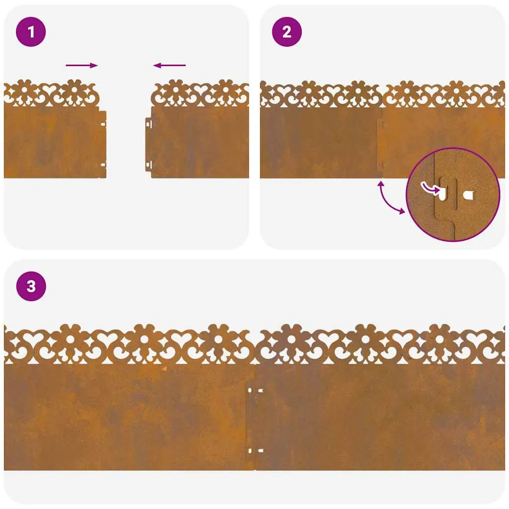 Liniile curate și finisajul ruginit se integrează armonios atât în grădini tradiționale, cât și în spații contemporane. Aceste borduri aduc un aer sofisticat și organizat întregului peisaj.