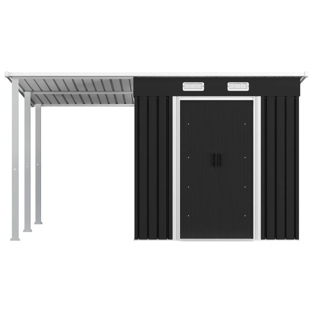 Acest șopron din oțel este soluția ideală pentru organizarea spațiului tău exterior. Cu dimensiuni generoase de 346 x 193 x 181 cm, oferă suficient spațiu pentru a depozita unelte de grădinărit, mobilier de exterior, echipamente sportive și multe altele. Construcția din oțel galvanizat îl face rezistent la rugină și intemperii, asigurând durabilitate pe termen lung chiar și în condiții meteorologice variate.