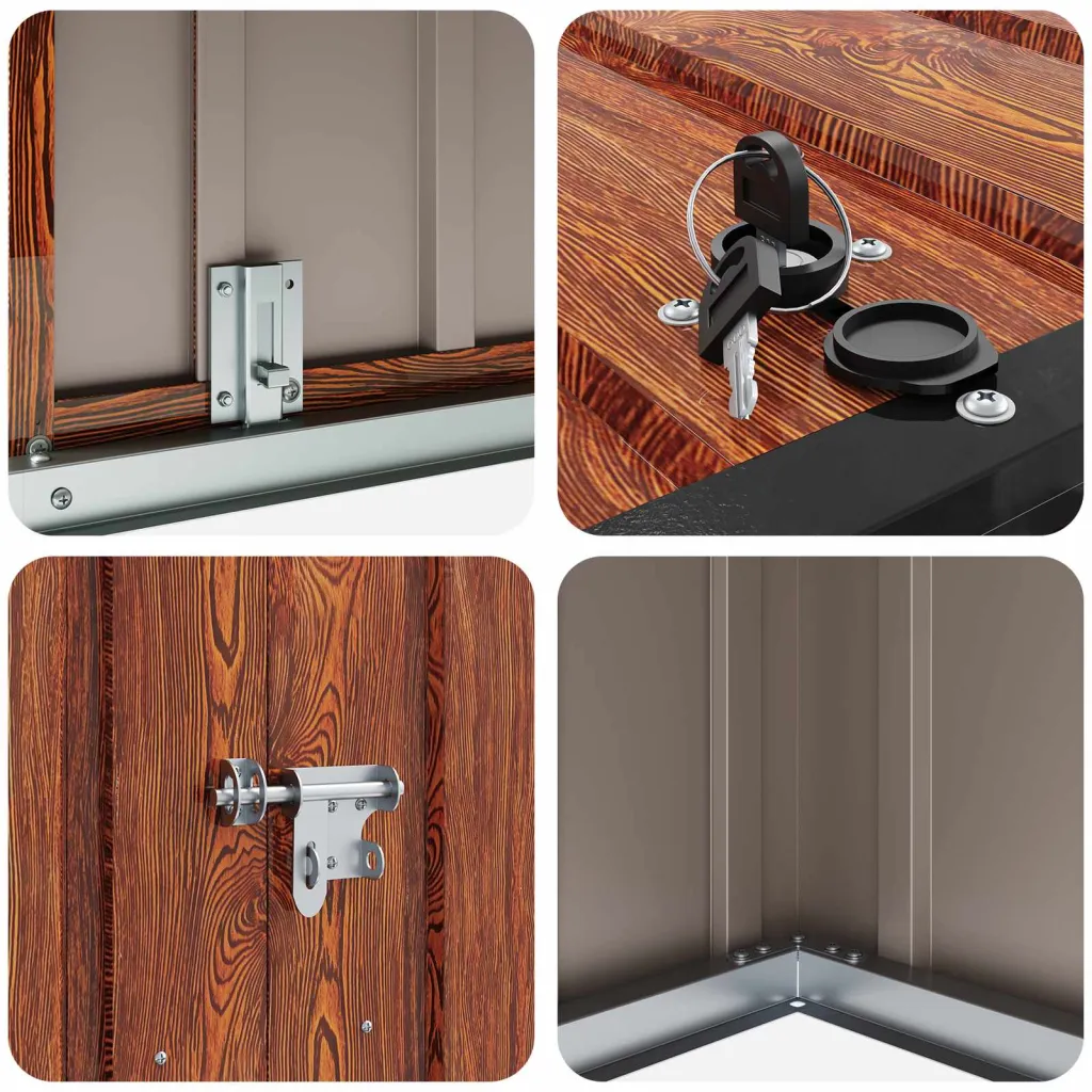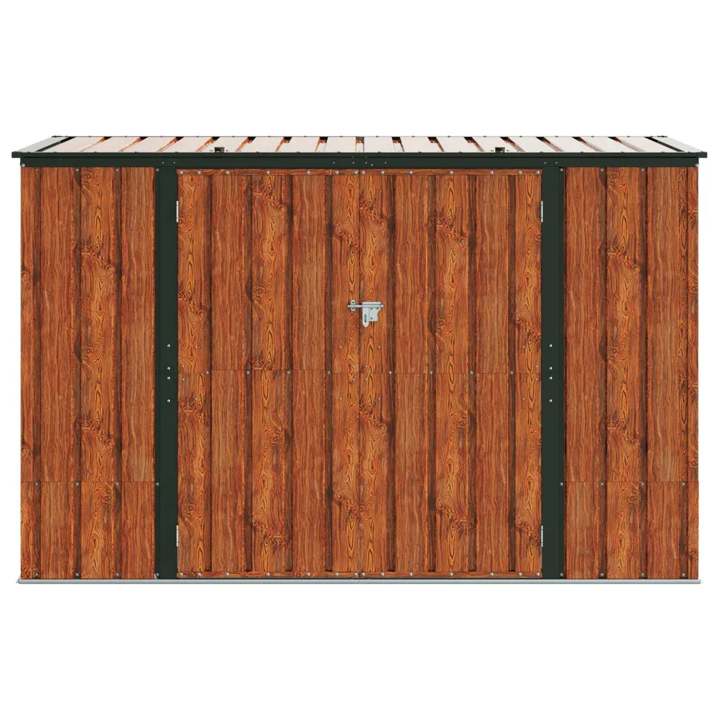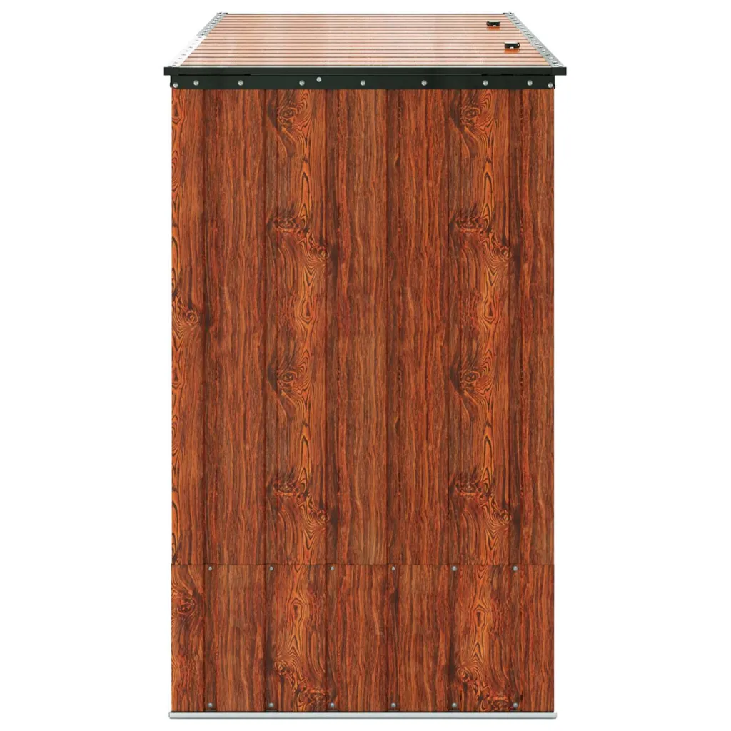 Această cutie de depozitare pentru grădină din oțel maro este soluția ideală pentru a păstra în siguranță și ordine toate uneltele și echipamentele tale de exterior. Cu dimensiuni generoase de 214 x 82 x 132 cm, oferă spațiu suficient pentru tot ce ai nevoie în grădină, păstrând totul la îndemână și protejat.