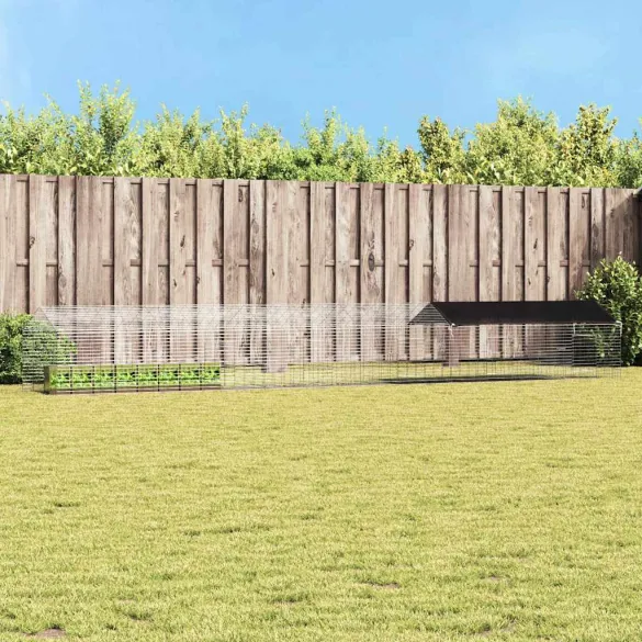 Această cușcă pentru iepuri din oțel galvanizat oferă un habitat ideal pentru animalele tale de companie. Designul argintiu și structura robustă se potrivesc perfect în orice grădină sau terasă, asigurând un mediu sănătos și protejat pentru iepurii tăi.