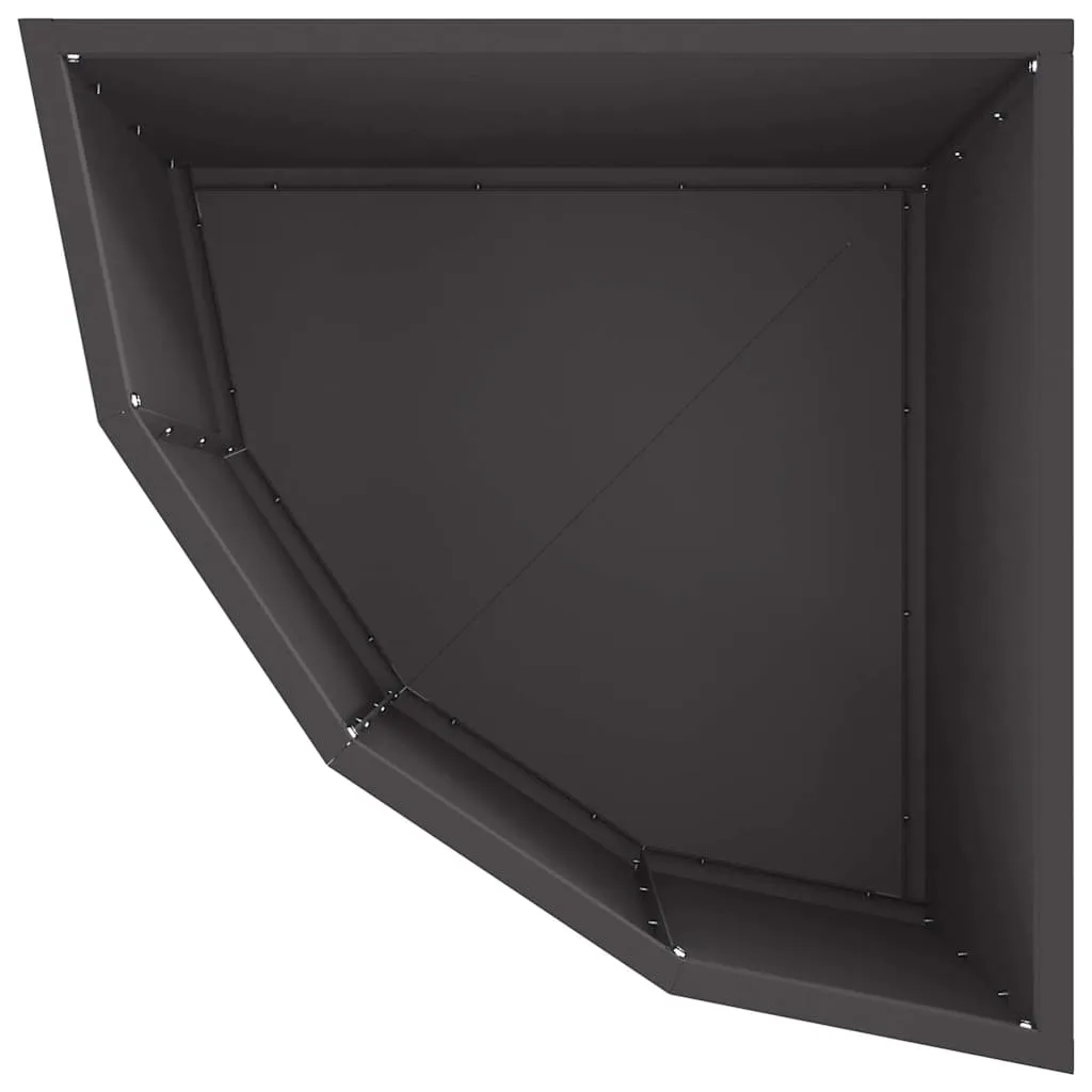 Descoperă ghiveciul de colț negru din oțel, soluția perfectă pentru a valorifica fiecare centimetru din grădina sau terasa ta. Cu dimensiunile optimizate de 45x45x35 cm, acest ghiveci se adaptează perfect spațiilor de colț, transformând zonele nefolosite în puncte focale pline de viață.