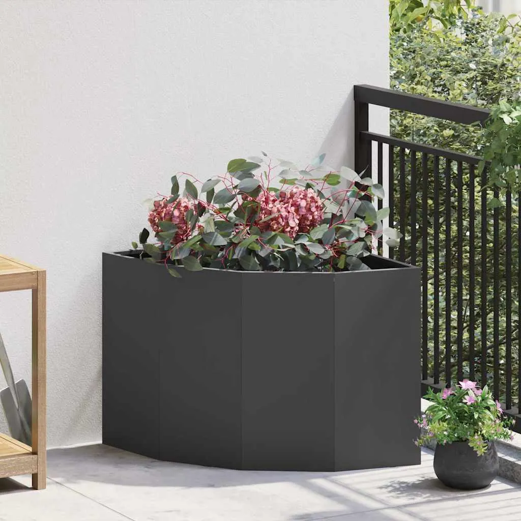 Acest ghiveci de colț negru din oțel este soluția perfectă pentru a valorifica fiecare colț al grădinii sau terasei tale. Cu dimensiunile generoase de 60x60x50 cm, oferă spațiu suficient pentru a adăposti plantele tale preferate, creând un punct focal atractiv în orice spațiu exterior.
