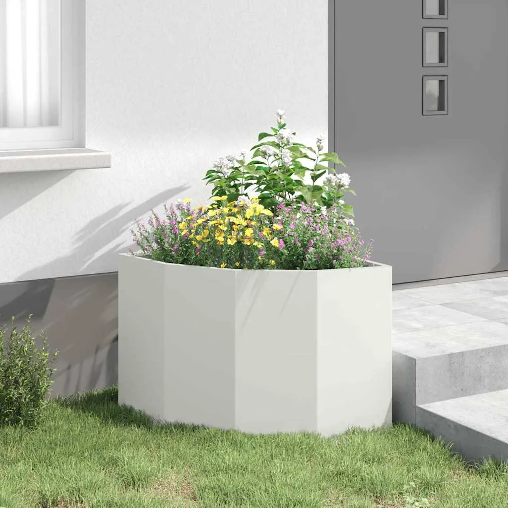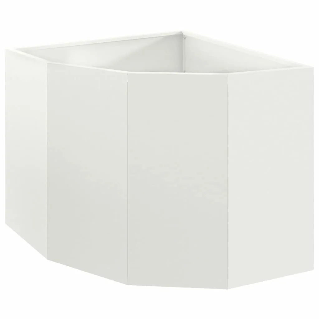 Acest ghiveci de colț din oțel alb îți aduce eleganță și funcționalitate în grădină sau pe terasă. Designul său inteligent se potrivește perfect în colțuri, optimizând spațiul disponibil și creând un punct focal atractiv.