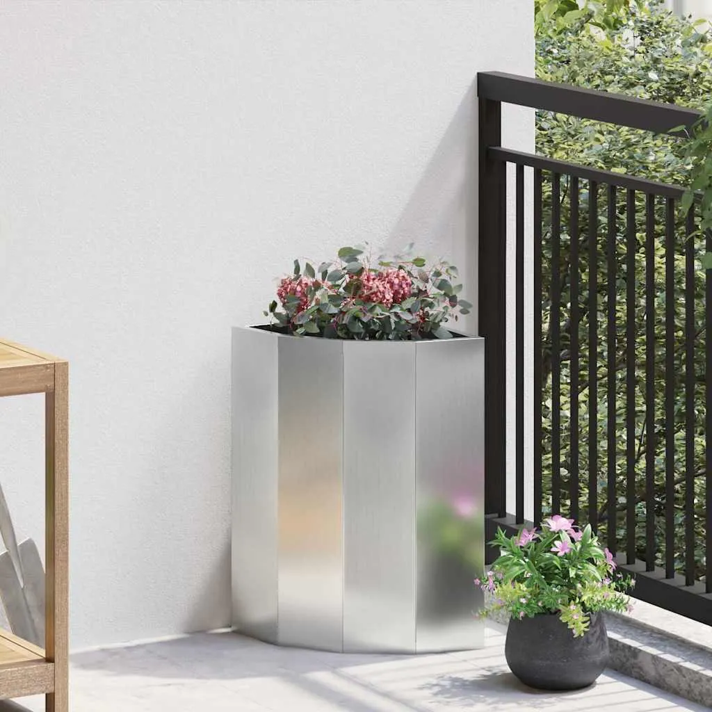 Acest ghiveci de colț din oțel galvanizat îți oferă soluția perfectă pentru a valorifica fiecare colț al grădinii, terasei sau balconului. Cu designul său inteligent și finisajul argintiu elegant, devine rapid un punct focal care adaugă un strop de modernitate și sofisticare spațiului tău exterior.
