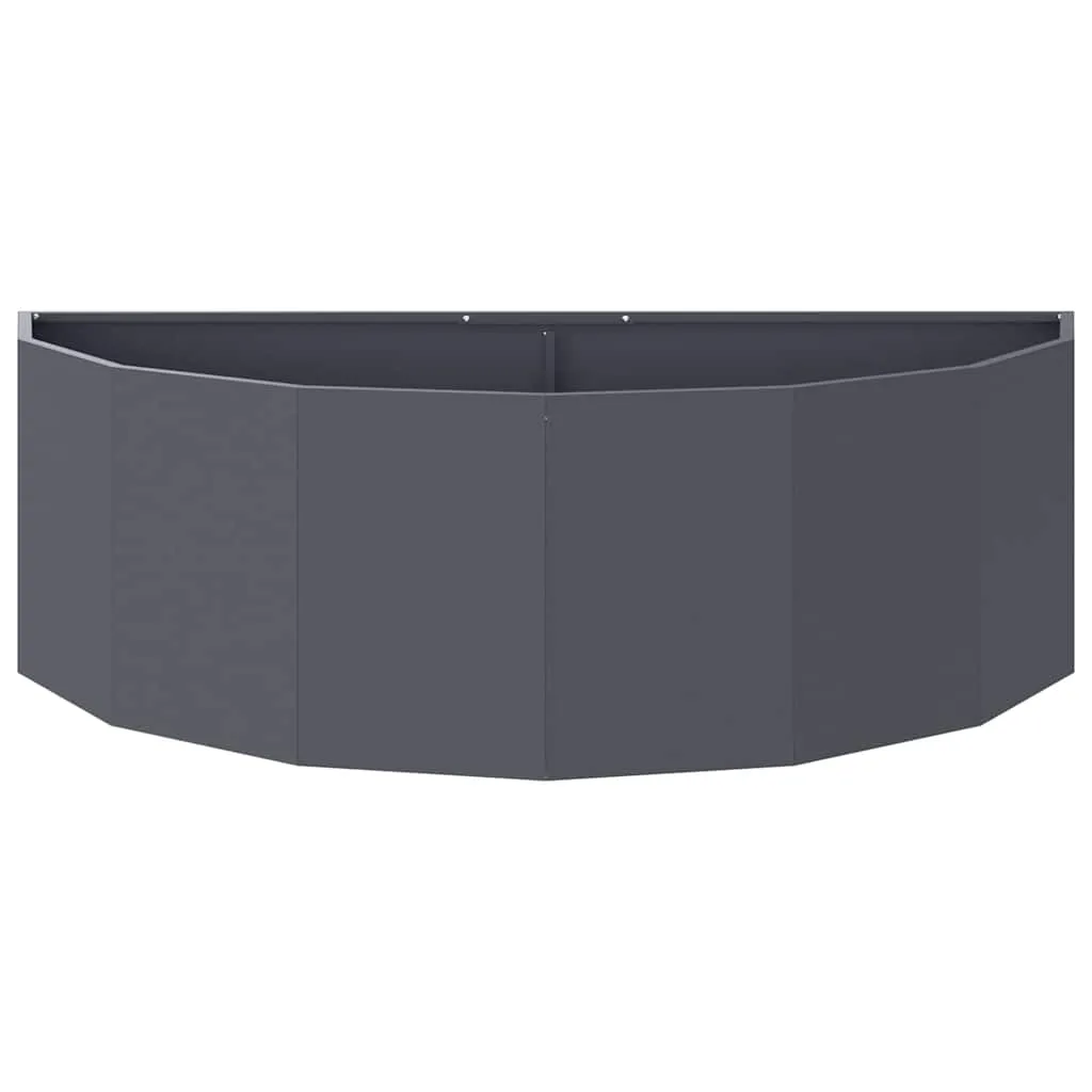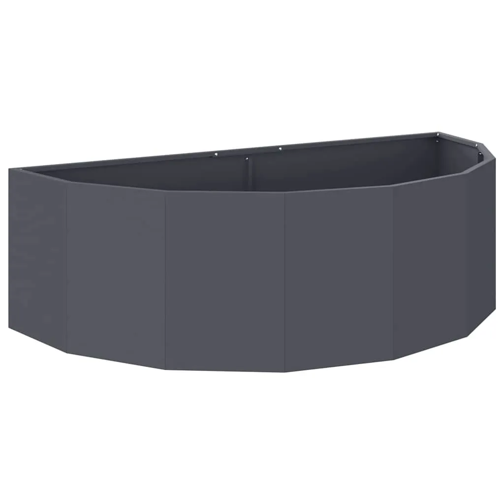 Transformă-ți spațiul exterior într-un oasis de frumusețe cu această jardinieră antracit din oțel premium. Cu dimensiuni generoase de 120 x 60 x 35 cm, această jardinieră semi-rotundă oferă spațiu abundent pentru a-ți exprima creativitatea în grădinărit, creând aranjamente florale spectaculoase care vor impresiona orice vizitator.