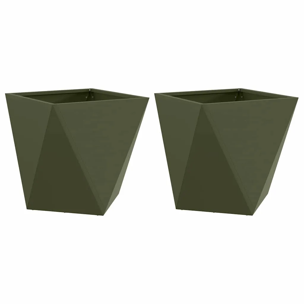 Acest set de 2 jardiniere din oțel verde măsliniu aduce un plus de stil și funcționalitate în spațiul tău exterior. Cu dimensiuni generoase de 50x50x50 cm, aceste jardiniere oferă spațiu suficient pentru a expune plantațiile tale preferate, creând un decor vibrant și plin de viață.