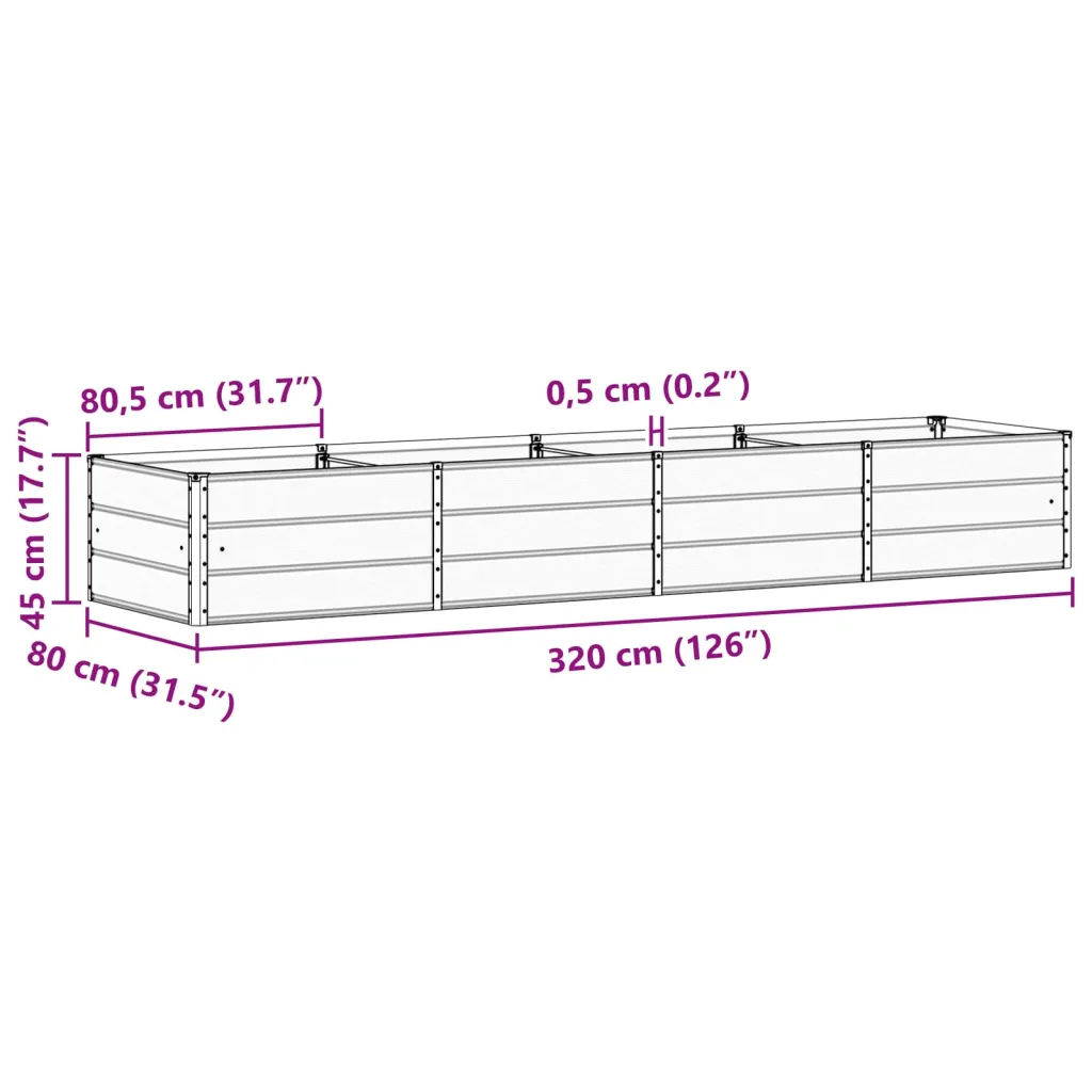 Spațiu generos pentru plante: Cu dimensiunile sale impresionante (320 x 80 x 45 cm), oferă un cămin larg pentru multiple plante, permițându-ți să creezi aranjamente florale spectaculoase sau să cultivi verdeață abundentă.