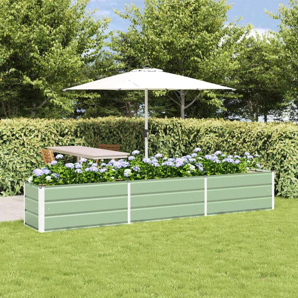 Adu un suflu de modernitate și ordine în grădină sau pe terasă cu această jardinieră elegantă din oțel galvanizat. Culoarea sa verde pastel se potrivește armonios atât cu decorul urban, cât și cu cel rustic, creând un punct focal plăcut pentru ochi. Este soluția ideală pentru a organiza și expoza plantațiile tale preferate într-un mod ordonat și estetic.