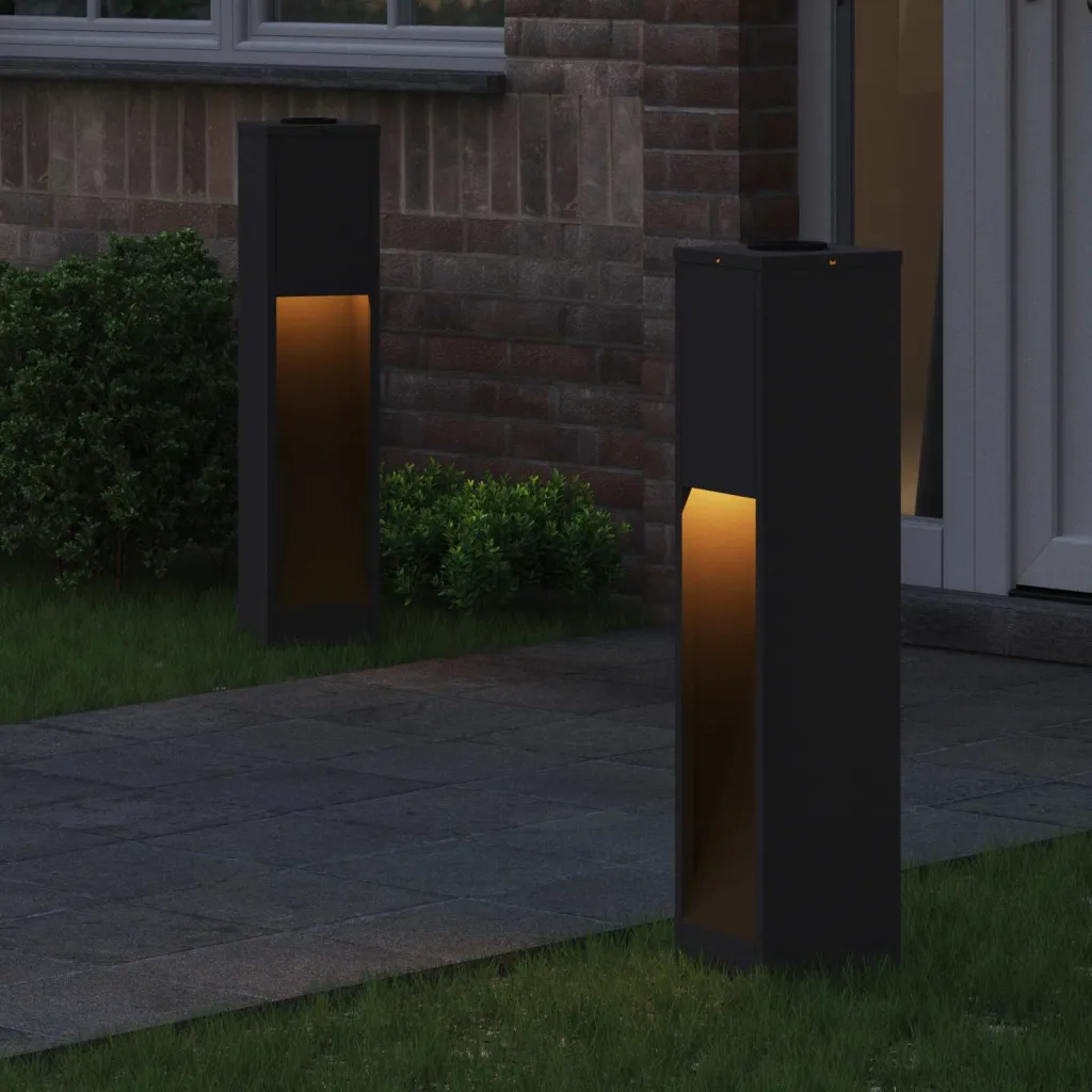 Adaugă un accent de eleganță și siguranță spațiului tău exterior cu acest set de două lămpi de alee cu LED-uri solare. Realizate din oțel laminat la rece într-o finisare neagră modernă, aceste lămpi sunt atât durabile, cât și estetice, integrându-se perfect în orice decor de grădină, pe alei sau lângă intrare.