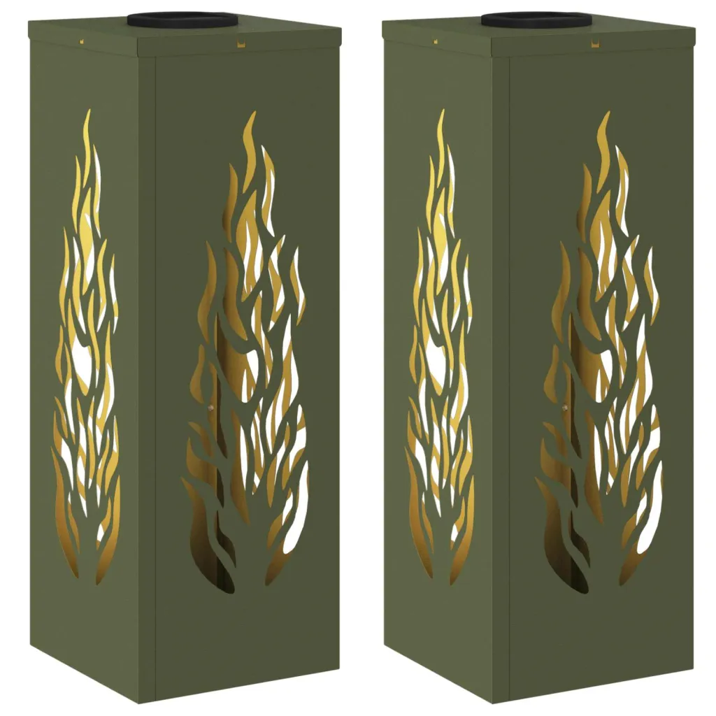Construite din oțel laminat la rece de înaltă calitate, aceste lămpi sunt concepute pentru a rezista an de an. Culoarea verde măsliniu se integrează perfect în peisajul natural al grădinii, iar structura solidă le face rezistente la vreme, păstrându-și aspectul frumos pentru o lungă perioadă de timp.