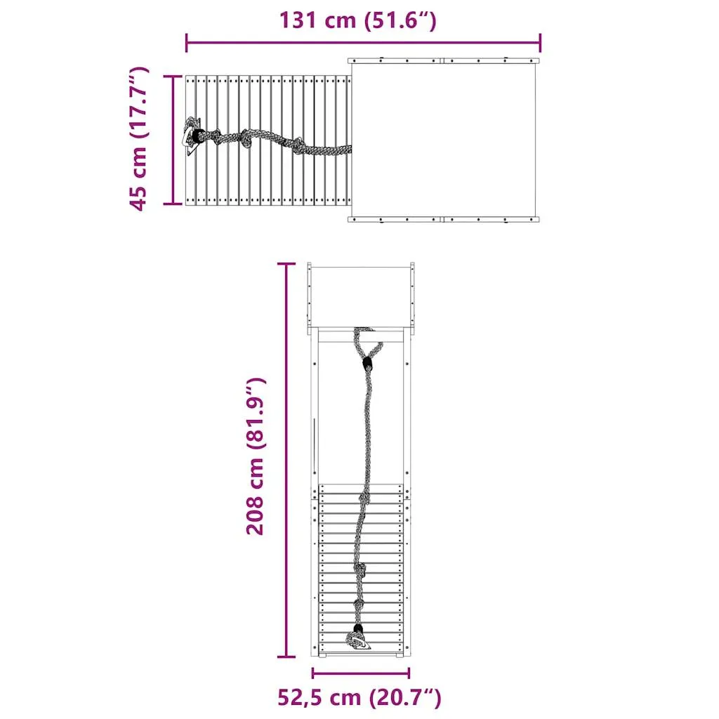 Peretele de cățărat cu funie dezvoltă abilitățile motorii, coordonarea și încrederea copiilor. Acest element de joacă încurajează activitatea fizică și explorarea într-un mediu controlat și sigur.