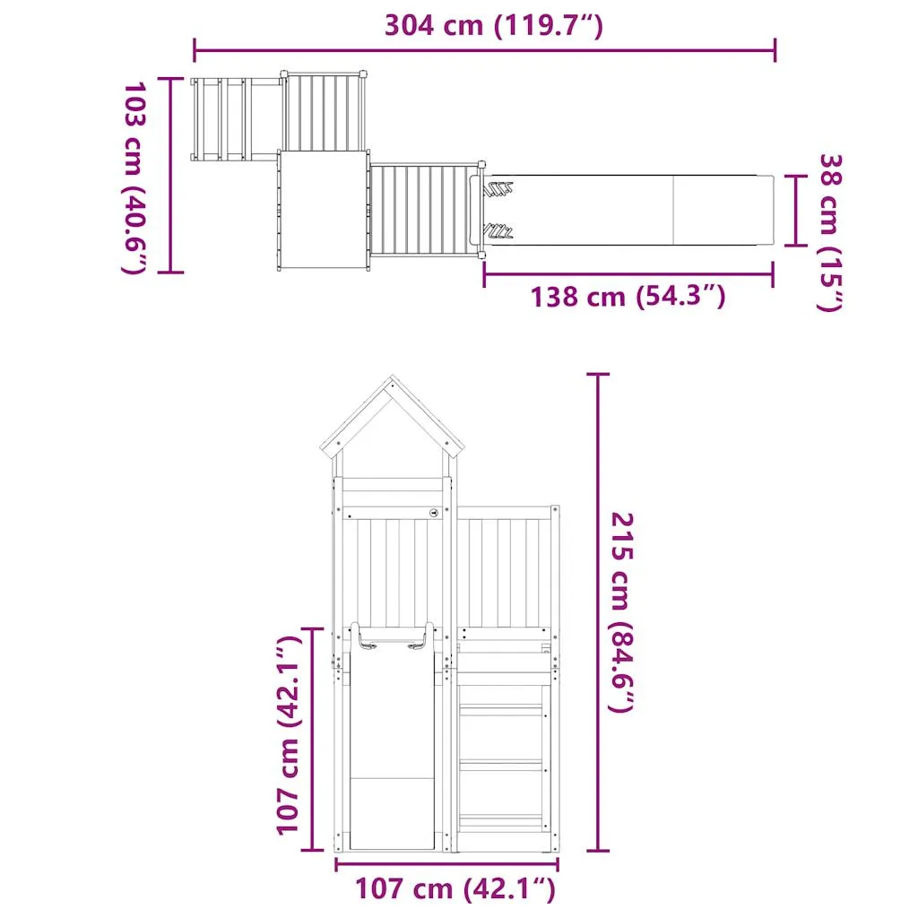 Construcție din lemn masiv de pin - Lemnul de pin oferă rezistență și stabilitate exceptională, asigurând că setul de joacă va rezista în timp și în diverse condiții meteorologice. Fibrele naturale și textura rustică adaugă un farmec aparte oricărei curți.