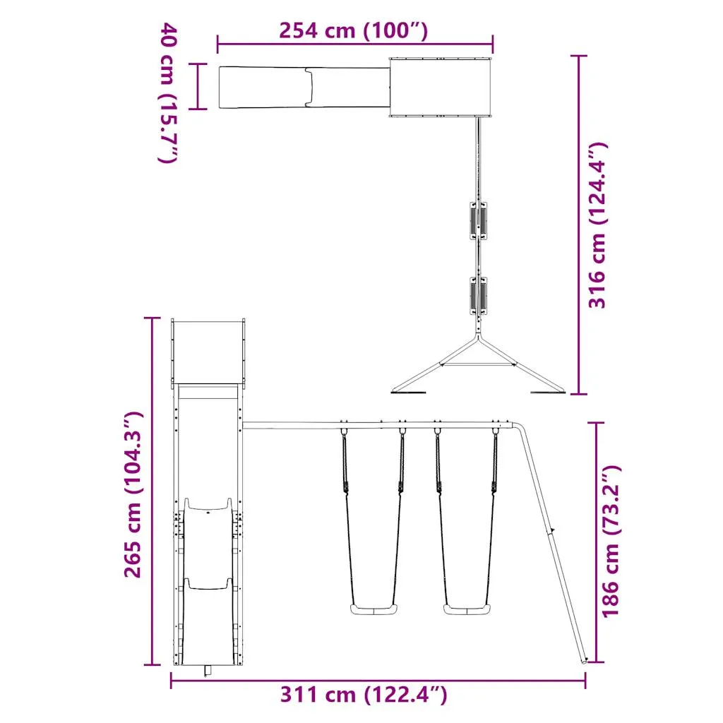 Platforma înaltă oferă o priveliște excelentă, toboganul rapid aduce zâmbete, iar leagănul dublu permite distracție împreună cu prietenii. Perfect pentru dezvoltarea abilităților motorii și socializare.