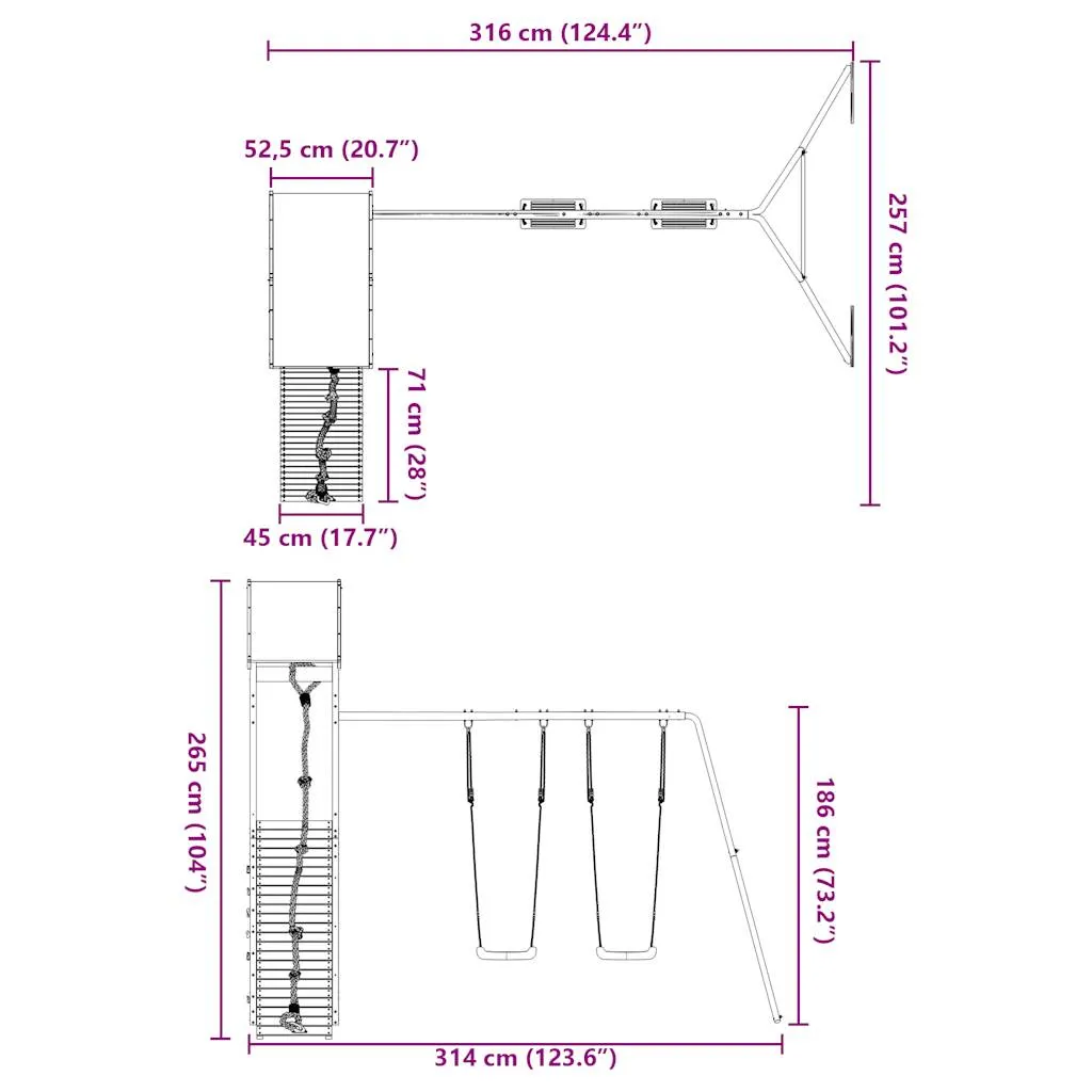 Acest set de joacă pentru exterior din lemn masiv de Douglas aduce distracția direct în curtea ta! Proiectat pentru copiii cu vârstă între 3 și 8 ani, acest set complet oferă ore de divertisment și activități creative.