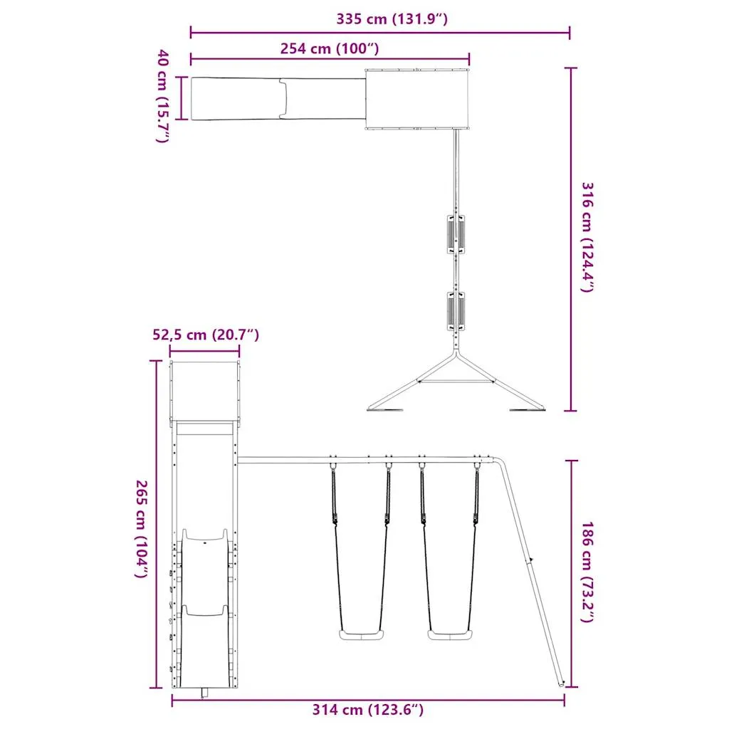 Acest set de joacă pentru exterior din lemn de pin impregnat aduce distracția direct în curtea ta! Proiectat pentru aventuri imaginative și activități interactive, acest set va deveni rapid locul preferat de joacă al micuților tăi.