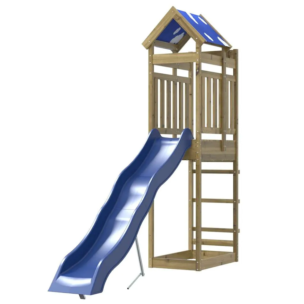 Acest set de joacă este destinat uzului casnic în exterior și nu este recomandat copiilor sub 3 ani. Asigură-te că suprafețele de joacă sunt adecvate și că copiii sunt supravegheați în timpul utilizării.