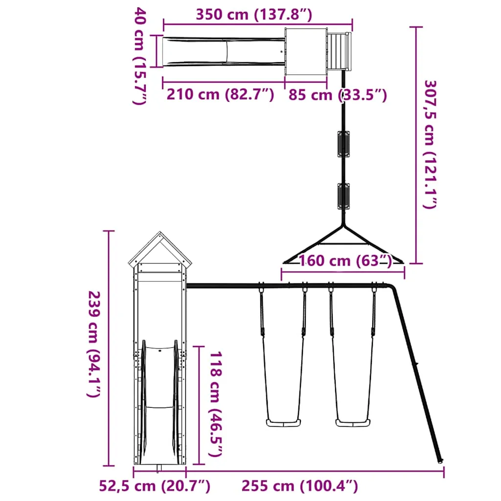 Acest set de joacă pentru exterior din lemn masiv de douglas aduce distracția direct în curtea ta! Proiectat pentru a stimula imaginația și activitatea fizică, acest set complet oferă ore de divertisment sigur pentru micuții tăi.