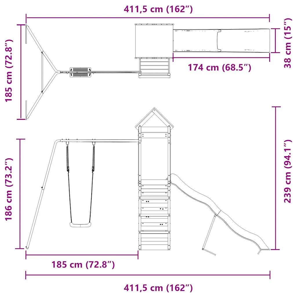 Combinația perfectă dintre turn, tobogan și leagăn oferă varietate și distracție nelimitată. Copiii își pot dezvolta imaginația, abilitățile motorii și se pot juca împreună cu prietenii.