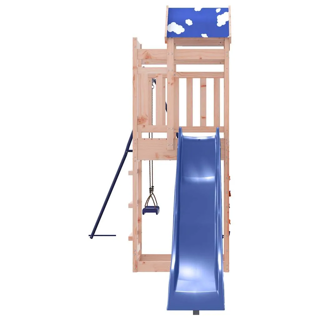 - Turn de joacă: Construit din lemn masiv de Douglas netratat, cu dimensiuni de 85 x 52,5 x 239 cm