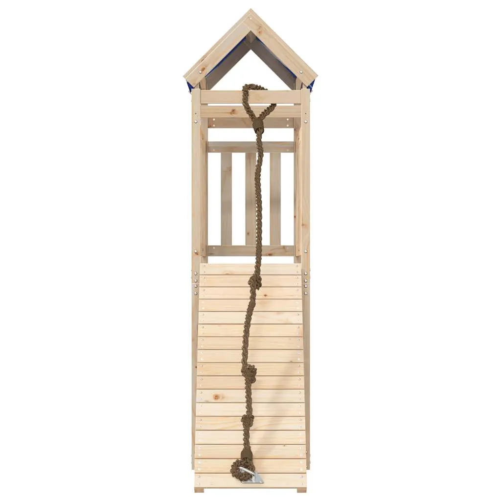 Design Funcțional: Platforma de joacă la 90 cm înălțime oferă o perspectivă excelentă asupra curții, menținând în același timp un nivel de siguranță optim. Balustradele din lemn protejează copiii în timp ce se joacă, iar acoperișul din poliester oferă umbră necesară în zilele însorite.