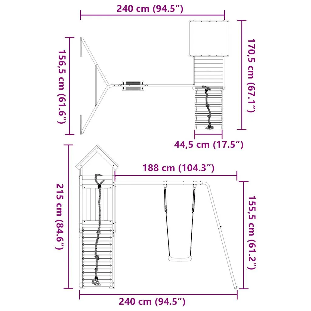 Imaginează-ți zâmbetul copiilor tăi când descoperă acest minunat set de joacă în curtea ta! Acest set complet din lemn de pin îți transformă spațiul exterior într-o arenă de aventuri și distracție nesfârșită.