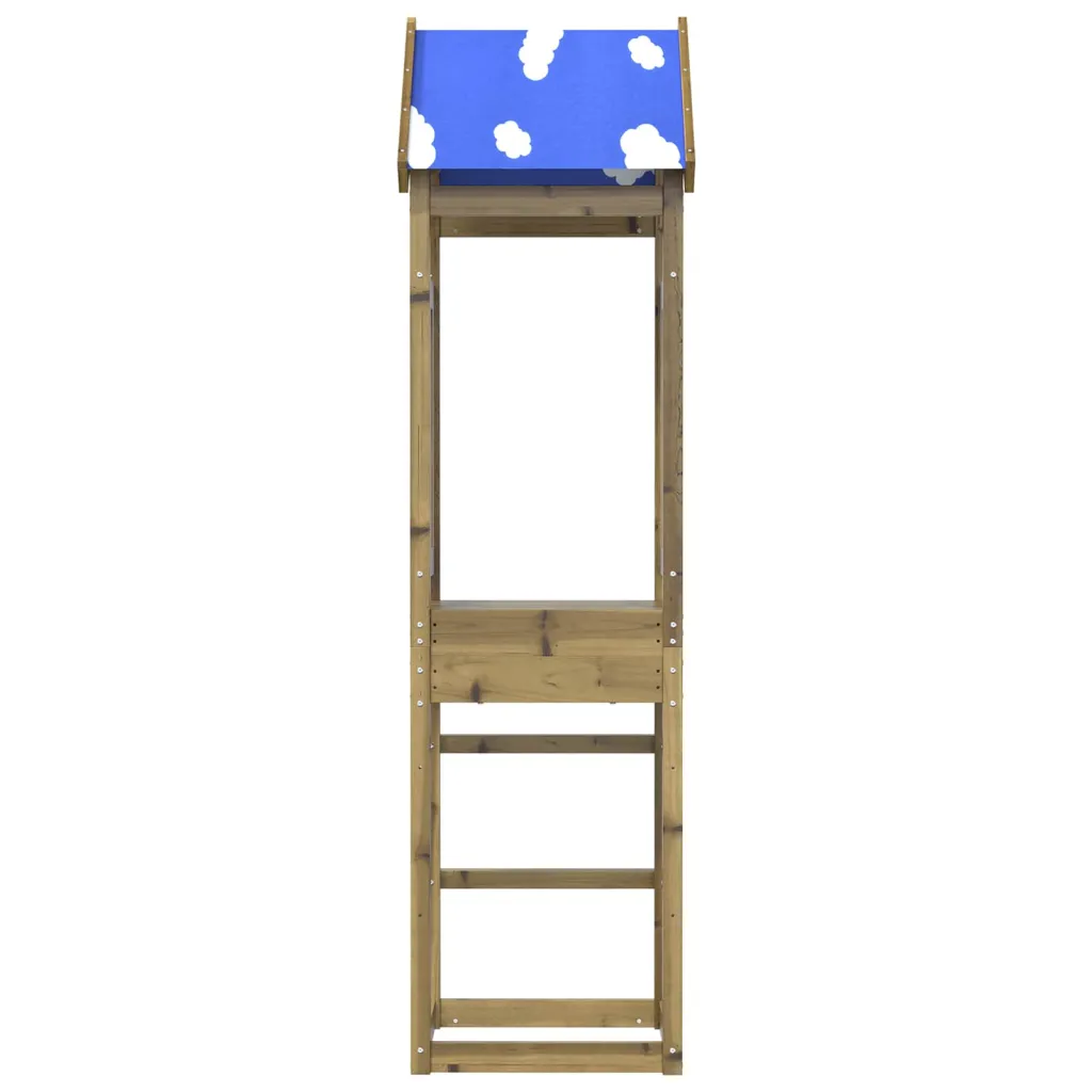 Adaugă un strop de magie și energie în curtea ta cu acest turn de joacă impunător, construit din lemn impregnat de cea mai bună calitate. Cu o înălțime de peste 2 metri, devine punctul central al oricărei grădini, oferind copiilor un spațiu sigur și captivant pentru a-și cheltui energia și a-și dezvolta imaginația.