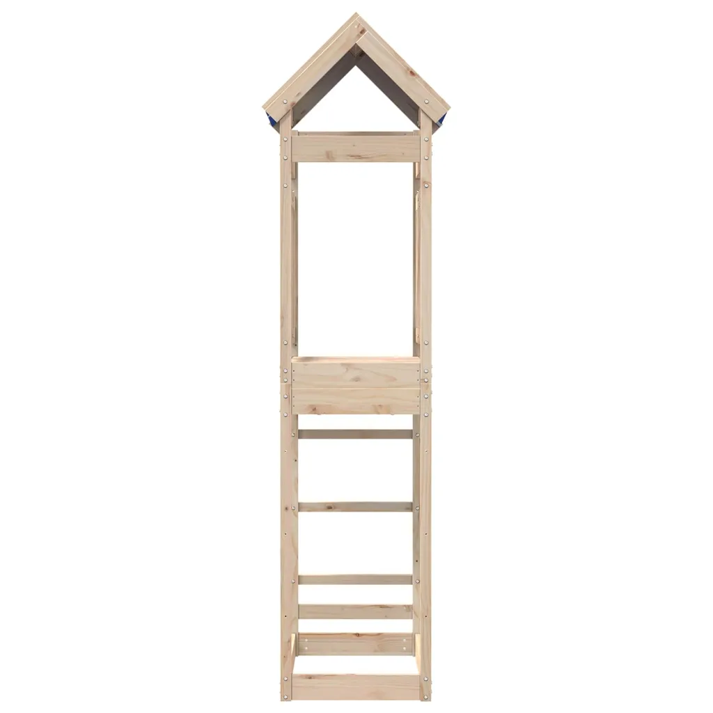Produsul este fabricat din lemn de pin masiv, un material cunoscut pentru rezistența și durabilitatea sa. Această construcție robustă asigură că turnul va face față utilizării zilnice și condițiilor meteorologice pe termen lung, oferind ani de distracție fără griji.