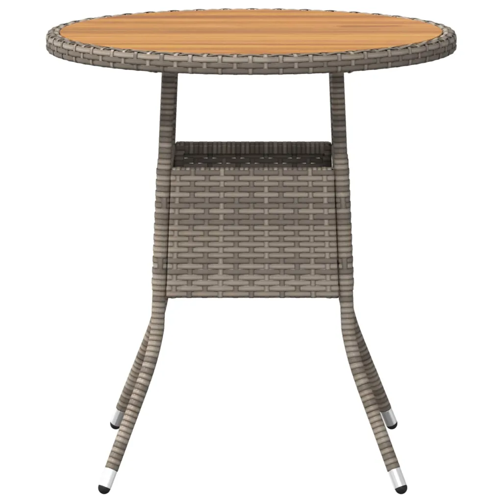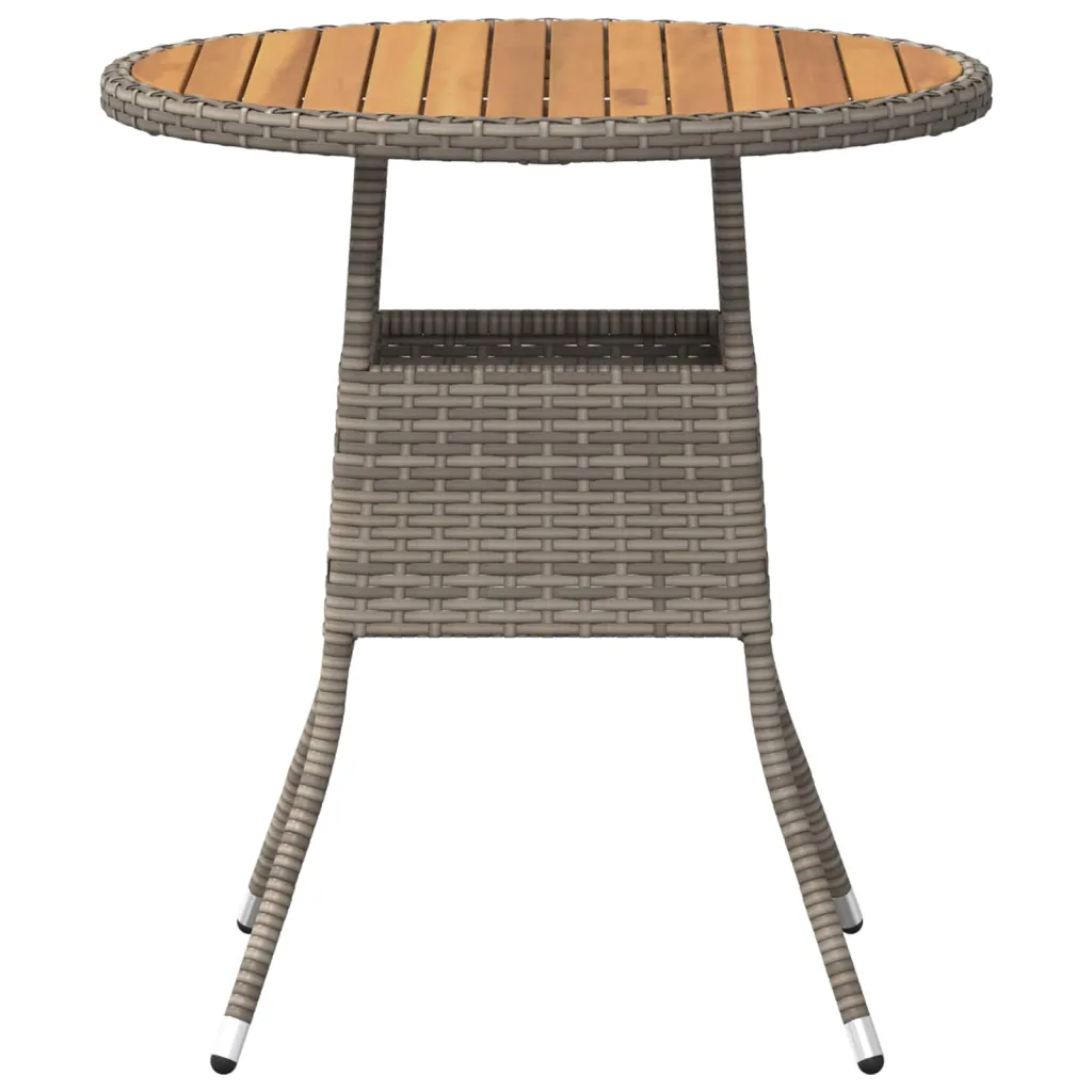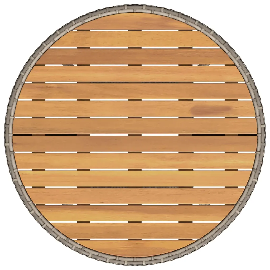 Masa este realizată dintr-un cadru stabil din poliratan rezistent și un plăcău frumos din lemn solid de acacia. Această combinație asigură nu numai o stabilitate excepțională, ci și o estetică caldă și naturală, specifică lemnului masiv. Este construită să reziste în timp, oferind o bază sigură pentru mesele tale cu familia și prietenii.