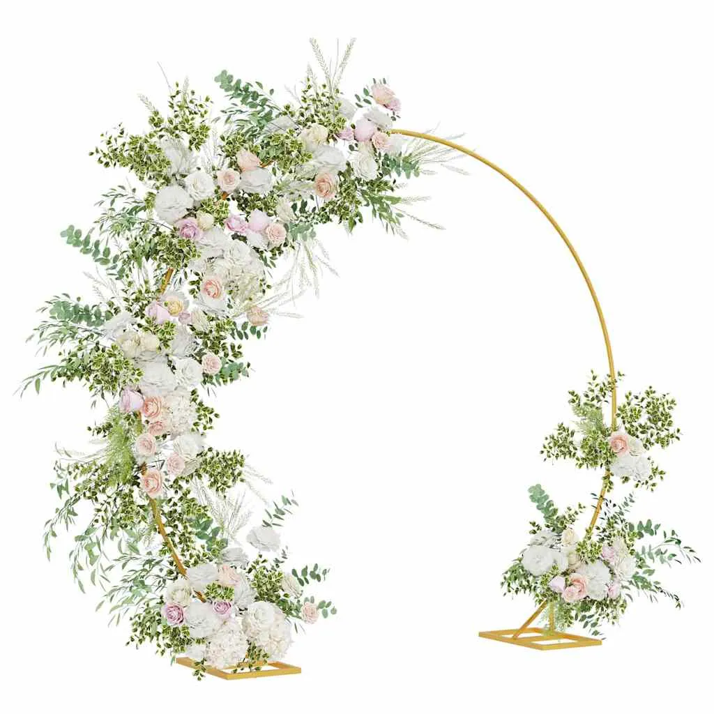 Adaugă un accent de rafinament și stil oricărui spațiu exterior cu acest arc de nuntă auriu. Designul său modern, cu linii curate și o formă rotundă distinctivă, aduce o notă de eleganță sofisticată, făcându-l perfect nu doar pentru ceremonii de nuntă, ci și pentru sesiuni foto memorabile sau ca decor permanent care să îmbogățească farmecul grădinii tale.