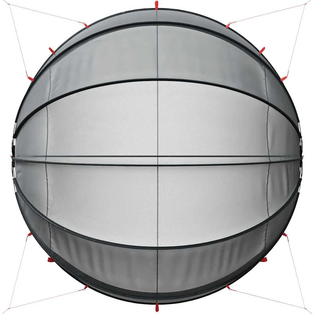 Construcție stabilă și funcțională: Sistemul cu sfori și picheți oferă stabilitate suplimentară, asigurând că domul rămâne ferm poziționat chiar și în condiții de vânt. Stâlpii flexibili din fibră de sticlă asigură rezistență fără a compromite flexibilitatea.