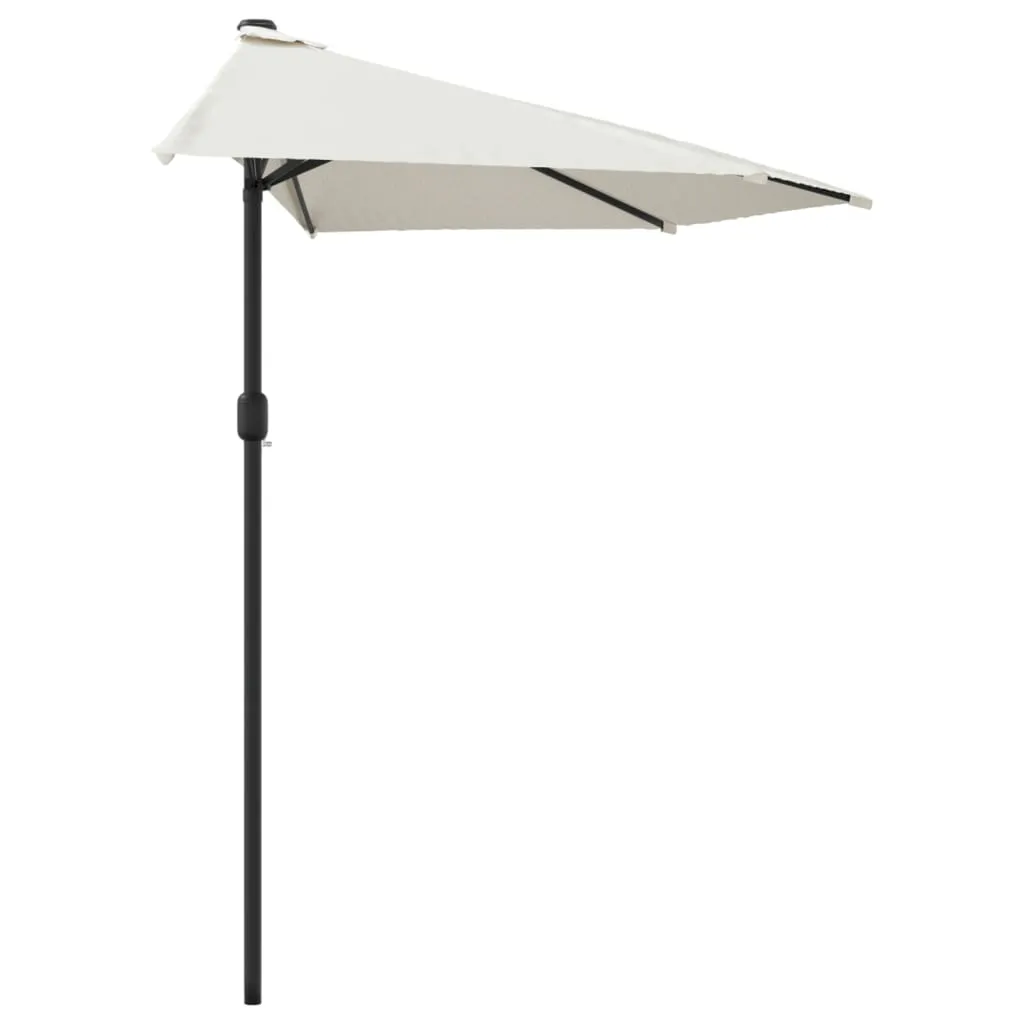 Designul semicircular asigură o umbră generoasă, iar mecanismul cu manivelă permite deschiderea și închiderea fără efort. Tija robustă din aluminiu și spițele din oțel garantează stabilitate chiar și în condiții de briză ușoară.